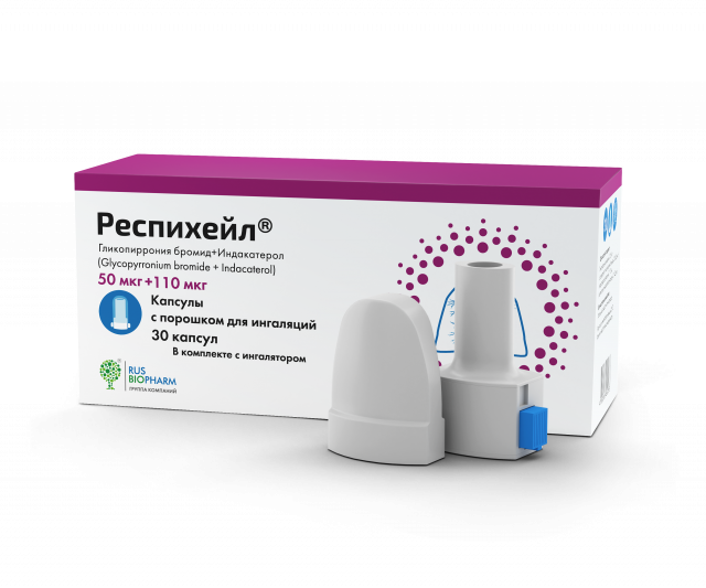 Препарат Респихейл® содержит два действующих вещества – гликопиррония бромид и индакатерол, которые относятся к группе веществ, называемых бронхолитиками. Действие бронхолитиков направлено на восстановление проходимости дыхательных путей.