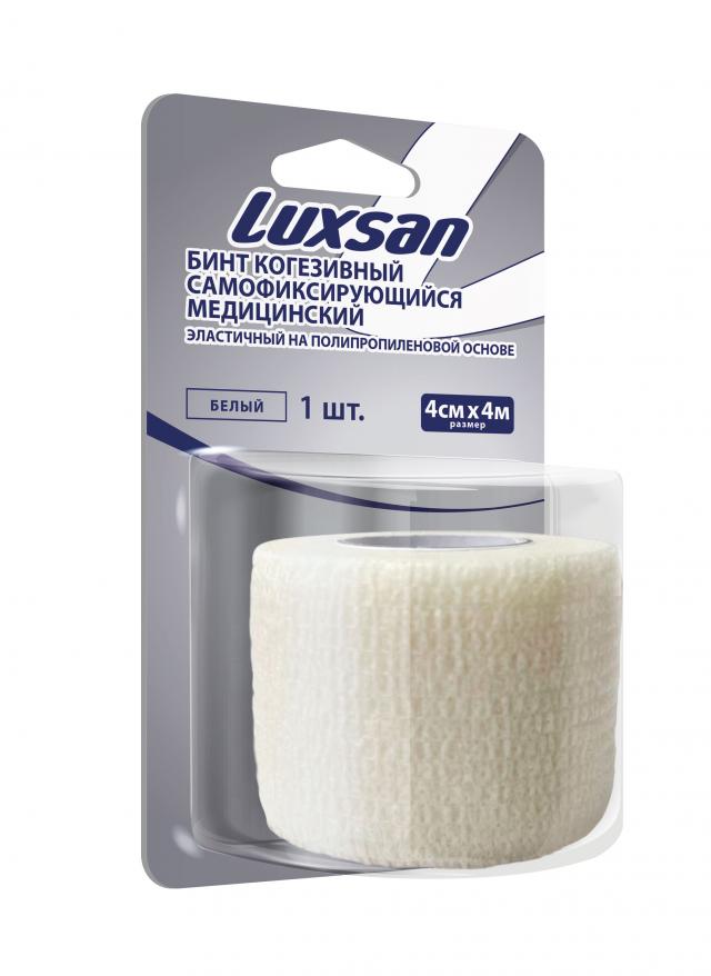 Бинт когезивный Luxsan самофиксирующийся медицинский эластичный без обработанного края (арт. 1.3.БЕЛ.4.4). Используется для бандажного обертывания, закрепления марлевых салфеток, повязок, компрессов, различных медицинских устройств (трубок, катетеров, электродов, шин).