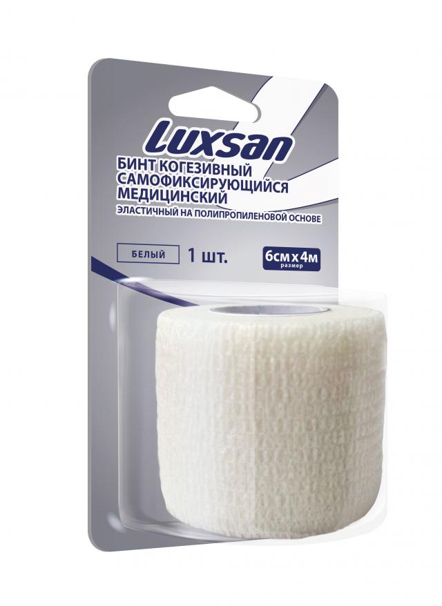 Бинт когезивный Luxsan самофиксирующийся медицинский эластичный без обработанного края (арт. 1.3.БЕЛ.6.4). Используется для бандажного обертывания, закрепления марлевых салфеток, повязок, компрессов, различных медицинских устройств (трубок, катетеров, электродов, шин).