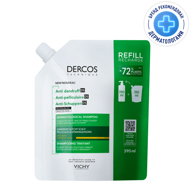 Виши Деркос шампунь интенсивный против перхоти сухих волос 390мл сменный блок