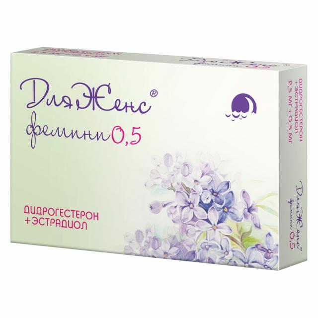 Препарат ДляЖенс® фемини относится к фармацевтической группе под названием «половые гормоны и модуляторы половой системы; гестагены в комбинации с эстрогенами; гестагены и эстрогены, фиксированные комбинации» и содержит 2 действующих вещества, относящихся к синтетическим половым гормонам: прогестаген дидрогестерон и эстроген эстрадиол. Эстрадиол в составе препарата по составу и своему действию подобен естественному женскому гормону, вырабатываемому яичниками. Он восполняет дефицит эстрогенов в организме женщины в периоде постменопаузы и купирует климактерические симптомы в течение первых недель после начала приема. Дидрогестерон проявляет эффективность при приеме внутрь и обладает активностью, схожей с другим естественным гормоном, который также вырабатывается яичниками – прогестероном. Применение дидрогестерона при проведении менопаузальной гормональной терапии (МГТ) снижает риск развития разрастания слизистой оболочки матки (гиперплазии эндометрия) на фоне приема эстрогена.