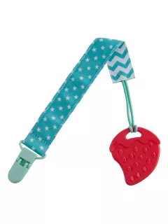 Прорезыватель для зубов на держателе ROXY-KIDS в форме клубнички подойдет маленьким непоседам. Если ваш малыш все время роняет грызунок, то держатель поможет избегать эту проблему. Прорезыватель-клубничка надежно крепится к одежде ребенка при помощи яркого держателя, а сама мягкая клубничка имеет рельефную поверхность, которая хорошо массирует десны малыша. Кроме того, грызунок можно охладить для дополнительного эффекта. Материалы держателя и клубнички безопасны и соответствуют стандартам безопасности. Лента выполнена из прочного полиэстера и прослужит вам очень долго. Держатель легко отсоединить от прорезывателя и использовать его также с ниблером, соской или пустышкой. Материалы: термоэластопласт, полиэстер, АБС-пластик
