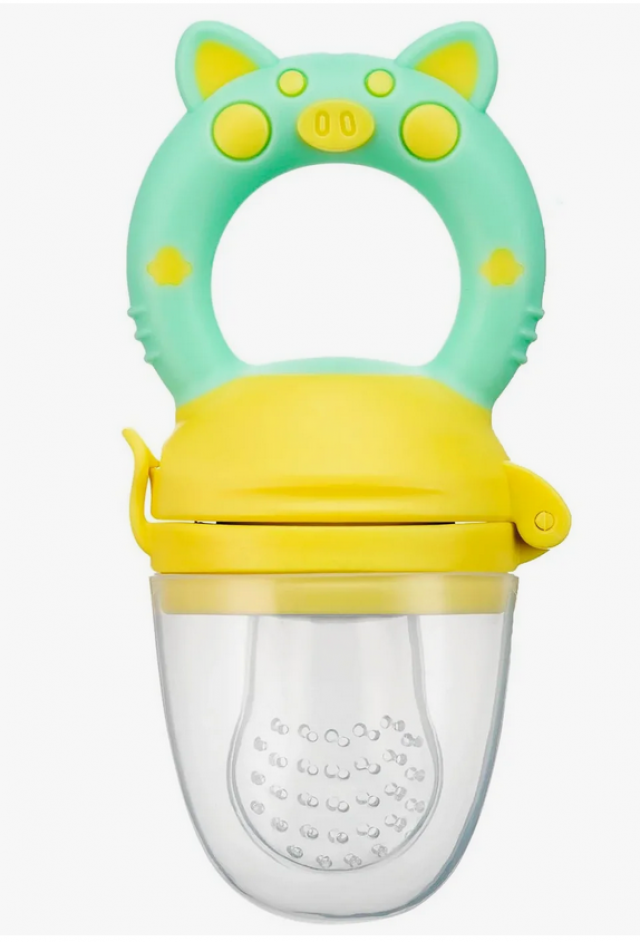 Ниблер ROXY-KIDS для прикорма с силиконовой сеточкой Piggy. Мятно-желтый
