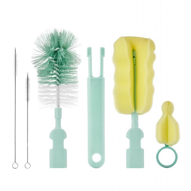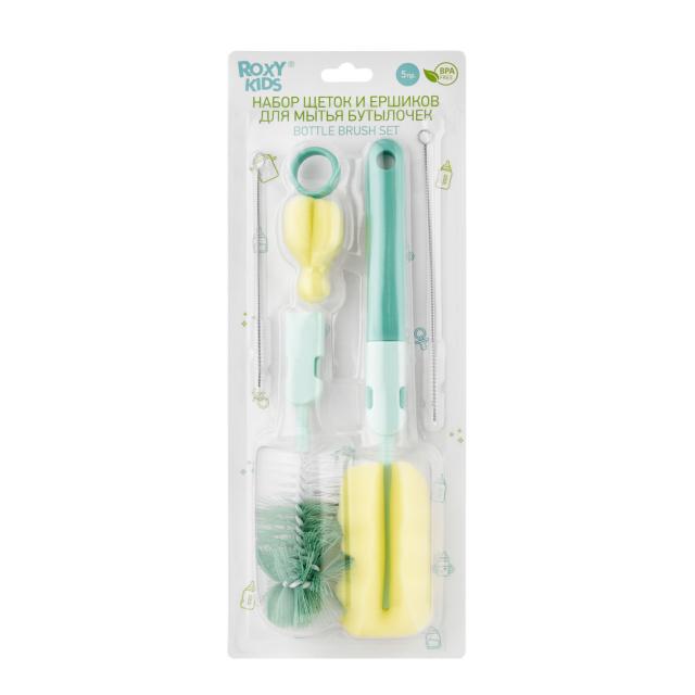 Набор щеток и ершиков ROXY-KIDS разработан специально для мытья бутылочек, трубочек, сосок и помогает сделать эту ежедневную процедуру максимально быстрой и удобной. В состав набора входят две сменные насадки для мытья бутылочек, маленькая щетка для соски и два мини-ершика для чистки трубочек. Классический жесткий ершик и мягкая поролоновая щетка предназначены для загрязнений разной степени. Они легко меняются и надежно защелкиваются на эргономичной рукоятке. Длина рукоятки 30 см позволяет почистить даже самые высокие бутылочки. Маленькая щетка повторяет форму соски, а ручку в форме кольца удобно держать, надев на палец. Мини-ершик – незаменимый инструмент для очистки силиконовых трубочек от остатков напитков. Он имеет оптимальный диаметр 5 мм и долговечную жесткую нейлоновую щетину. Материалы: полипропилен, нейлон, пенополеуретан