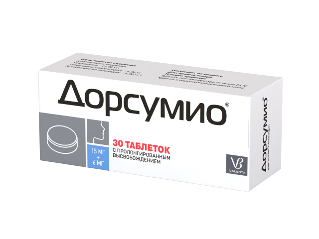 Дорсумио, 15 мг + 6 мг, таблетки с пролонгированным высвобождением.