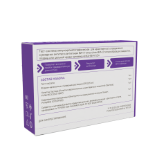 1. Тест-кассета - 1 шт. 2. Флакон-капельница с буферным раствором (БР) - 1 шт. 3. Пипетка Пастера (Пипетки серологические и для переноса жидкостей (Пастера), производитель Нинбо Гритмед Медикал Инструментс Ко., Лтд., Китай, РУ ФСЗ 2012/11857) - 1 шт. 4. Скарификатор одноразовый (Инструменты медицинские колющие: Ланцет, РУ ФСЗ 2011/09783) - 1 шт. 5. Салфетка спиртовая (Салфетка прединъекционная дезинфицирующая с раствором спирта, одноразовая по ТУ 9393-006-56334457-2008, производитель ООО "Лейко", Россия, РУ ФСР 2008/03704) - 1 шт. 6. Паспорт - 1 шт. 7. Инструкция по применению - 1 шт.