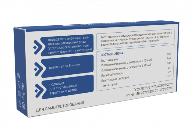 Предназначен для одноэтапного быстрого качественного выявления антигенов гемолитического стрептококка группы А в образцах фарингеальных мазков человека методом иммунохроматографического анализа (ИХА) с целью первичной диагностики стрептококковой инфекции
