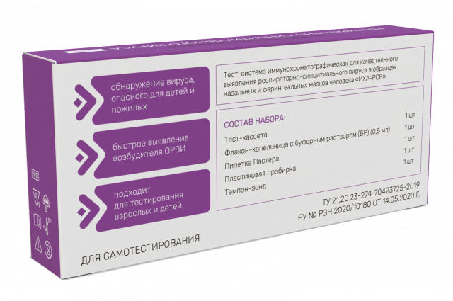 Предназначен для одноэтапного быстрого качественного выявления антигенов респираторно-синцитиального вируса в образцах назальных и фарингеальных мазков человека методом иммунохроматографического анализа (ИХА) с целью первичной диагностики РСВ-инфекции.