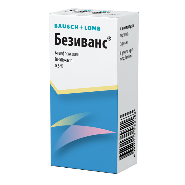 Препарат Безиванс® содержит действующее вещество безифлоксацина гидрохлорид и является противомикробным препаратом из группы фторхинолонов. Он уничтожает чувствительные к его воздействию микроорганизмы, которые могут вызывать инфекции глаз. Препарат применяется местно, путем закапывания в глаз.