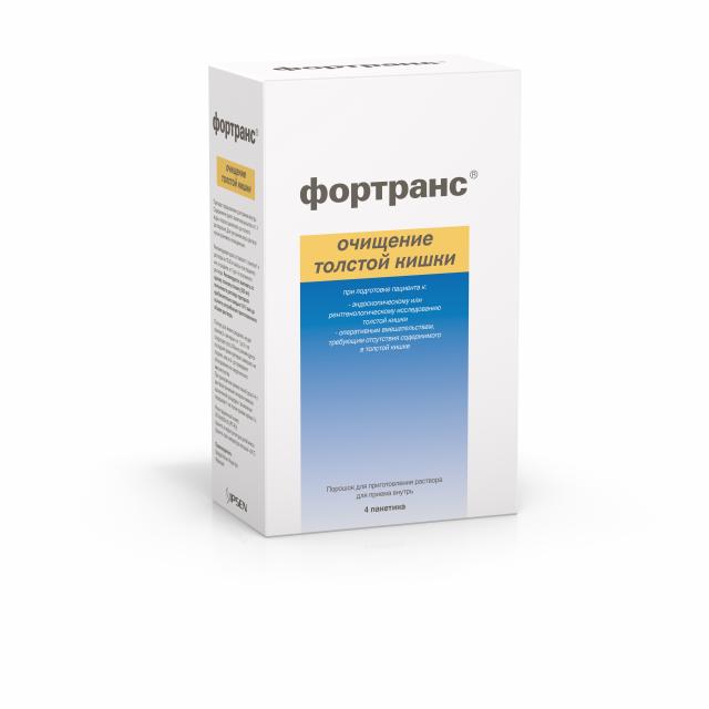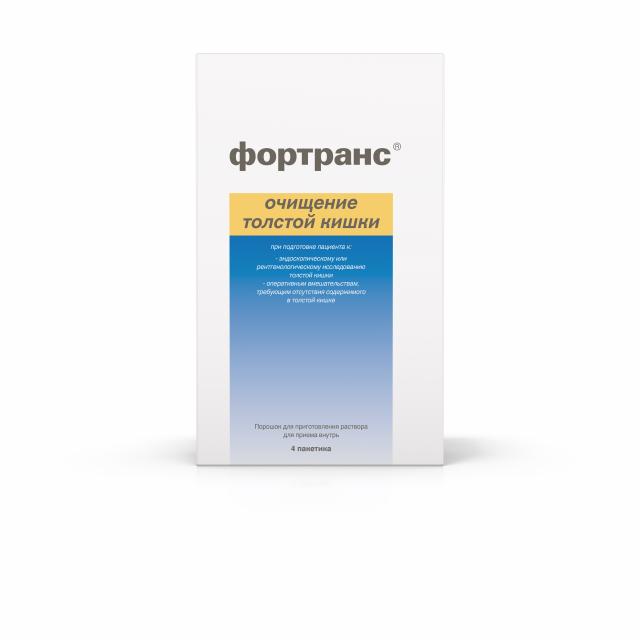 Препарат Фортранс® содержит действующие вещества макрогол (макрогол 4000 или полиэтиленгликоль 4000 или ПЭГ 4000) и электролиты (натрия хлорид, калия хлорид, натрия гидрокарбонат, натрия сульфат безводный) и относится к группе лекарственных средств «слабительные средства; осмотические слабительные средства». Макрогол 4000 является полимерным соединением с большой молекулярной массой, что позволяет ему эффективно связывать и удерживать воду в просвете желудочно-кишечного тракта.