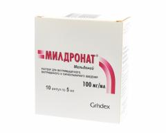 Милдронат раствор для инъекций 100мг/мл 5мл №10