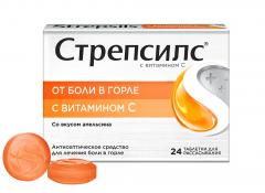 Стрепсилс Вит.C/апельсин таблетки для рассасывания №24