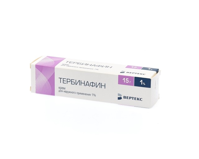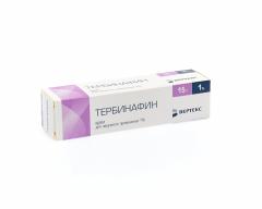 Противогрибковый препарат для местного применения, обладающий широким спектром противогрибковой активности. Даже в небольших концентрациях тербинафин оказывает фунгицидное действие в отношении дерматофитов (Trychophyton rubrum, T.mentagrophytes, T.verrucosum, T.violaceum, T.tonsurans, Microsporum canis, Epidermophyton flocco-sum), плесневых (в основном C.albicans) и определенных диморфных грибов (Pityrosporum orbicu-lare). Активность в отношении дрожжевых грибов, в зависимости от их вида, может быть фунгицидной или фунгистатической.