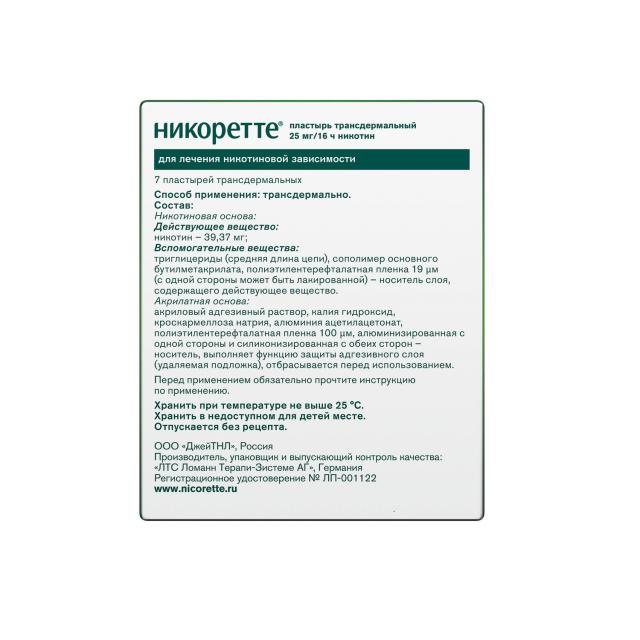 Никоретте ТДТС прозрач. 25мг/16ч №7