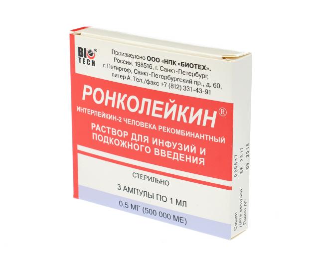 Раствор для инфузий и подкожного введения в ампулах по 1 мл в дозах по 1 мг рИЛ-2 (1 000 000 ME), 0,5 мг рИЛ-2 (500 000 ME) или 0,25 мг рИЛ-2 (250 000 ME) по 3 или 5 ампул в пачке, в которую вложена Инструкция по применению.