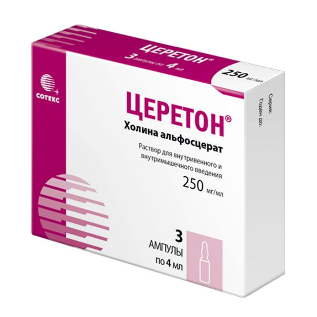 Церетон раствор внутривенно и внутримышечно 250мг/мл 4мл №3