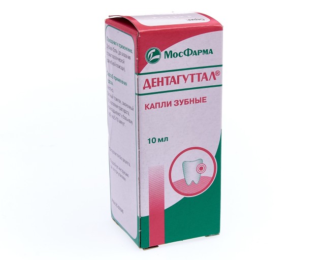 Зубные капли Дентагуттал применяют для устранения зубной боли ватный тампон, смоченный 2-3 каплями препарата, помещают в полость зуба на 5-10 минут.