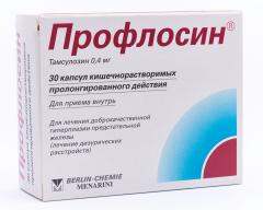 Тамсулозин избирательно и конкурентно блокирует постсинаптические 1A-адренорецепторы, находящиеся в гладкой мускулатуре предстательной железы, шейки мочевого пузыря и простатической части уретры. Это приводит к снижению тонуса гладкой мускулатуры предстательной железы, шейки мочевого пузыря, простатической части уретры и улучшению оттока мочи. Блокаторы -адренорецепторов могут снижать артериальное давление (АД) за счет уменьшения периферического сосудистого сопротивления. Однако, в ходе клинических исследований тамсулозина, у пациентов с нормальным уровнем АД, клинически значимого снижения АД отмечено не было. После приема внутрь тамсулозин быстро и практически полностью абсорбируется из ЖКТ. Всасывание тамсулозина несколько замедляется после приема пищи. После однократного приема препарата внутрь в дозе 0.4 мг максимальная концентрация тамсулозина в плазме крови достигается приблизительно через 6 часов. Связь с белками плазмы крови - около 99%, объем распределения небольшой - 0.2 л/кг. Тамсулозин не подвергается эффекту "первого прохождения" и медленно метаболизируется в печени с образованием менее активных метаболитов. Большая часть тамсулозина присутствует в крови в неизмененной форме. В эксперименте выявлена способность тамсулозина незначительно индуцировать активность микросомальных ферментов печени. Тамсулозин и его метаболиты выводятся главным образом с мочой, 9% препарата выводится в неизменном виде. Период полувыведения тамсулозина составляет приблизительно 10 часов (при однократном приеме после еды), при регулярном приеме -13 часов.