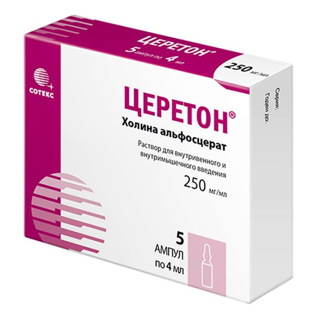 Церетон раствор внутривенно и внутримышечно 250мг/мл 4мл №5