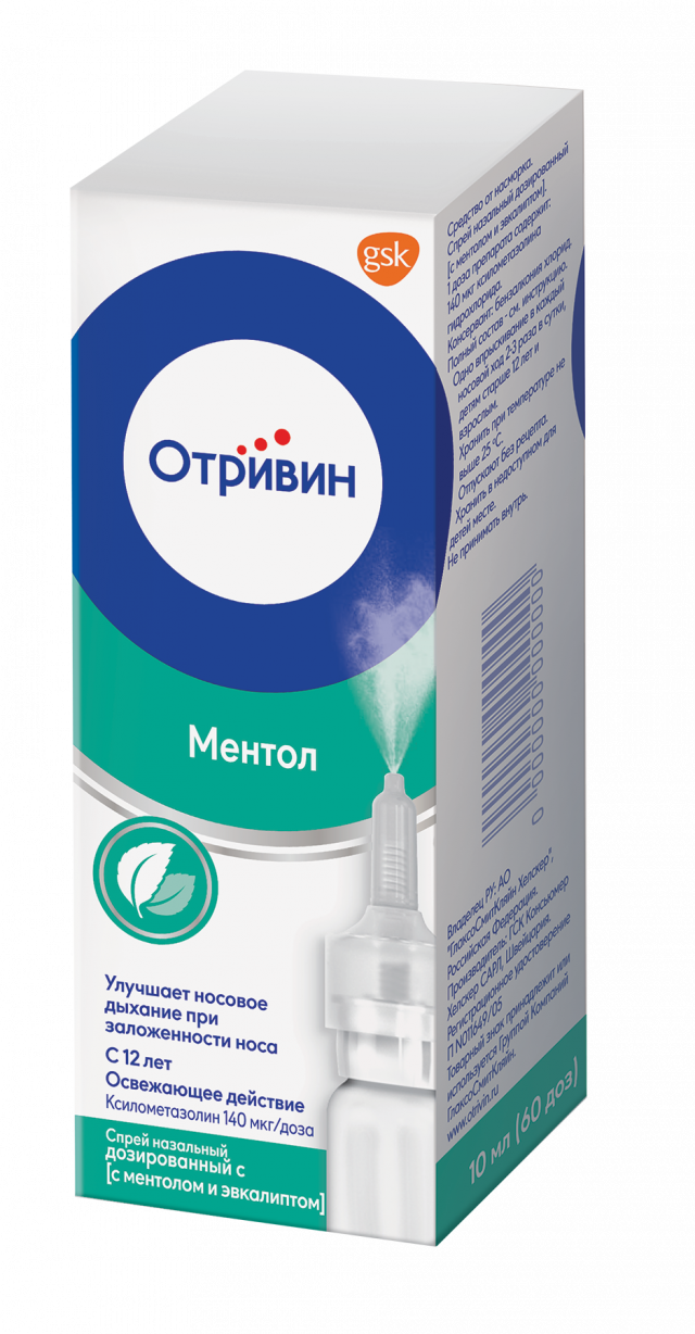 Отривин спрей назальный 140мкг/доза ментол/эвкалипт 10мл