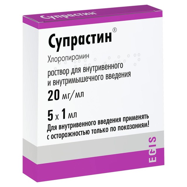 Супрастин раствор для инъекций 20мг/мл 1мл №5