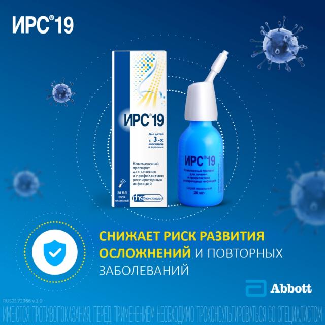 Перед началом использования следует внимательно ознакомиться с инструкцией ИРС®19*. В ней содержится вся необходимая информация о составе ИРС®19, способе применения, показаниях, противопоказаниях, дозировке ИРС®19 и побочном действии.