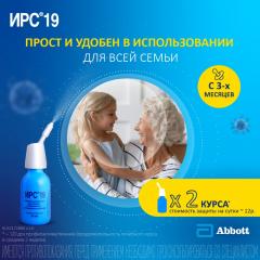 В целях профилактики взрослым и детям с 3-х месяцев по 1 дозе препарата в каждый носовой ход 2 раза в день в течение 2-х недель (начинать курс лечения ИРС®19 рекомендуется за 2-3 недели до ожидаемого подъема заболеваемости).