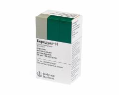 С осторожностью назначают при сахарном диабете, недавно перенесенном инфаркте миокарда, тяжелых заболеваниях сердечно-сосудистой системы, гипертиреозе, феохромоцитоме (обязателен регулярный контроль уровня калия в крови), гипертрофии предстательной железы, обструкции мочевыводящих путей, у пациентов, предрасположенных к развитию узкоугольной глаукомы. В случае внезапного появления и быстрого прогрессирования одышки (затрудненного дыхания) следует немедленно обратиться к врачу. Имеются сообщения об отдельных случаях осложнений со стороны глаз (мидриаз, повышение внутриглазного давления, закрытоугольная глаукома, боль в глазном яблоке), возникших при попадании в глаза аэрозоля ипратропия бромида или его комбинации с бета2-агонистами. Пациентов следует подробно проинструктировать в отношении правил использования дозированного аэрозольного ингалятора Беродуал® Н. Боль в глазу, нечеткое зрение, ощущение появления ореола или цветных пятен перед глазами в сочетании с покраснением глаза в виде конъюнктивальной или корнеальной инъекции могут быть признаками острого приступа закрытоугольной глаукомы. При появлении перечисленных симптомов в любом сочетании следует начать лечение глазными каплями, вызывающими сужение зрачка и немедленно обратиться за специализированной медицинской помощью. У пациентов, имеющих в анамнезе муковисцидоз, возможны нарушения моторики ЖКТ. Следует иметь в виду, что использование для купирования приступа больших доз в течение длительного времени может вызвать неконтролируемое ухудшение течения заболевания и обусловить необходимость коррекции базисной противовоспалительной терапии. В связи с угнетающим действием на родовую деятельность применение прекращают незадолго до родов. Следует избегать попадания в глаза. При первом применении новой формы дозированного аэрозоля Беродуал® Н пациенты могут отмечать, что по вкусу новый препарат несколько отличается от прежней лекарственной формы, содержащей фреон. При переходе от одной формы к другой пациентов следует предупреждать о возможном изменении вкусовых ощущений. Следует также сообщать о том, что эти препараты взаимозаменяемы и что вкусовые свойства не имеют отношения к безопасности и эффективности нового препарата.