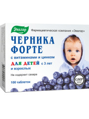 Черника форте с витаминами и цинком — комплекс витаминов для зрения с антоцианами черники, витаминами и цинком, необходимыми для ежедневного поддержания зрения, особенно при повышенных нагрузках на глаза. Биологически активные вещества черники (антоцианы, органические кислоты, каротины, пектиновые вещества, микроэлементы), действующие в комплексе с витаминами группы В, витамином С, рутином и цинком: